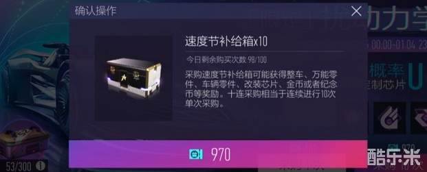 1、礼品券目前的主要作用就是拿来抽车的,每次100点, 10连抽的价格是970点,会稍微划算一些并且有保底。 建议玩家们尽可能攒够10连再抽。