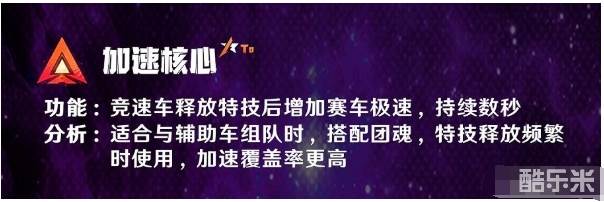 适合与辅助车组队时搭配团魂,特技释放频繁时使用,加速覆盖率更高。