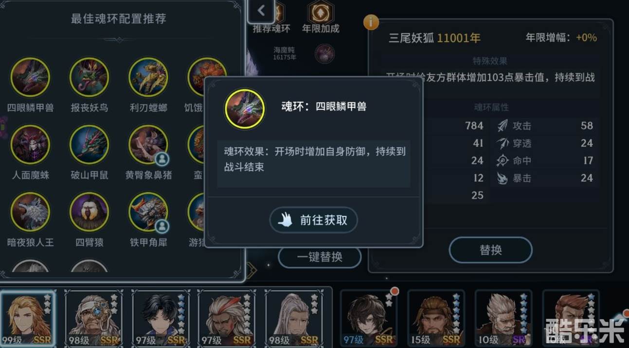 四眼鳞甲兽:开场时增加自身的防御,持续到战斗结束。