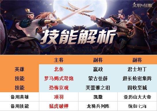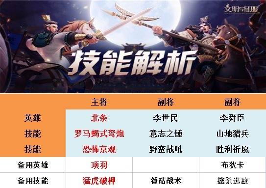 用北条就上野蛮战吼,有项羽则使用锤砧战术;有S的控制技能就换掉A的,佛系队伍不争不抢照样辉煌;