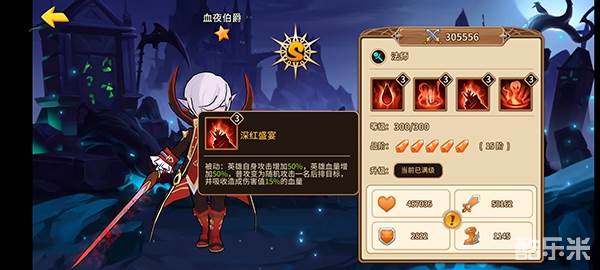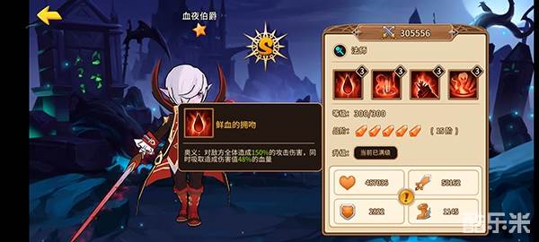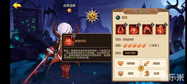 普通攻击会给受击者添加一个吸血印记,印记会降低目标40%的防御,印记持续3回合;血夜伯爵攻击带有印记的目标时,会造额外受到100%的攻击伤害;