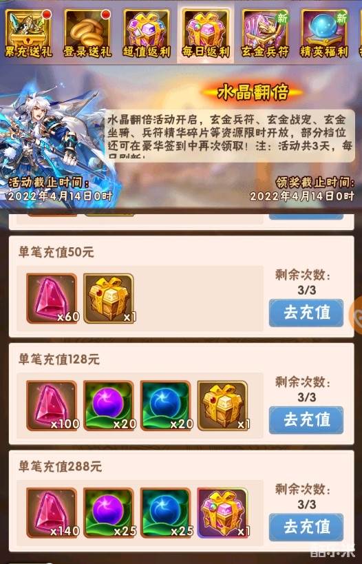 《少年三国志》水晶翻倍 玄金兵符+玄金宠物