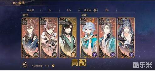 ⑥6号位是陵,需要尽可能地提高伤害,推荐的套装是马套,伤害越高阵容结束战斗地速度就越快。