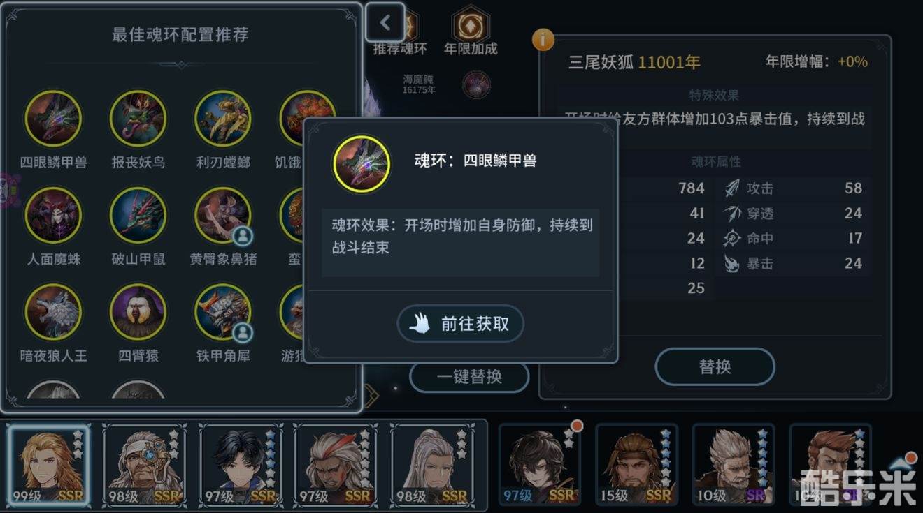 三尾妖狐:开场时友方增加群体暴击值,持续到战斗结束。