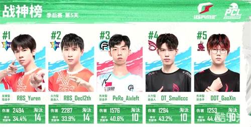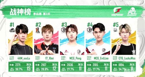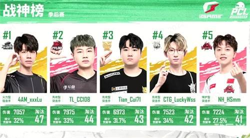 选手榜单:4AM战队xxxLu荣膺季后赛战神