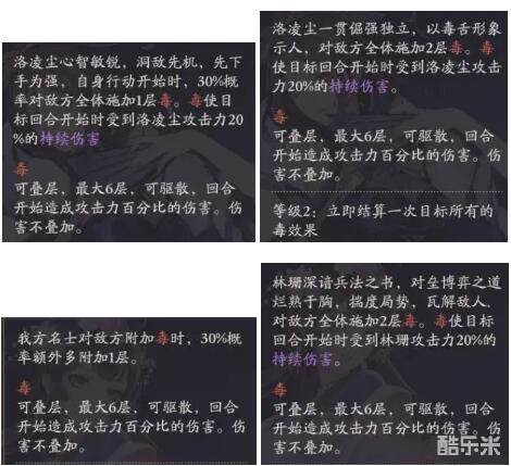 此外,毒可以和了了的火海、左丘肃的雷电等持续伤害叠加,所以一旦练度上去,组一队DOT伤害队伍,也许是未来可期的(参考爬塔时对面的洛凌尘)。