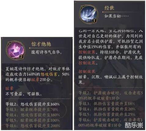 怒气技能让她成为一张眩晕对策卡,0突即有50%概率无条件眩晕,如果能突5,则眩晕概率变为100%,如果和贺之洲的破盾眩晕配合得当,再加上文司宥这类概率眩晕,能够将对面晕成一片。此时如果输出携带赤枭四艺,对被控单位有25%增伤,想必是可以收割一波的。