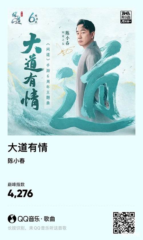 6周年主题曲《大道有情》上线QQ音乐不久,就已收到了很多道友们的评价。有人听出了情怀、有人听出了青春、有人悟出了处世之道......