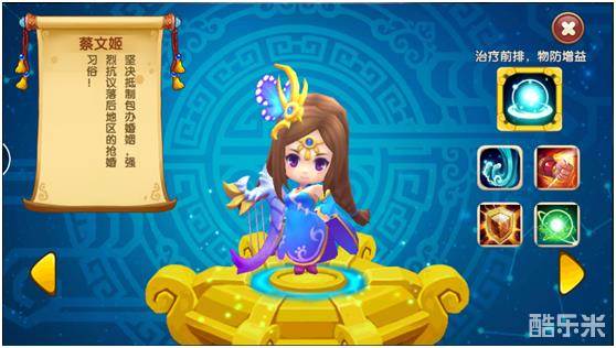 在初始队伍中,玩家只会拥有蔡蔡这一只奶妈,所以重要性不言而喻。保护好她,就是保护好队伍的后勤核心。另外,在需要持续战斗而不自动回血的战斗中,比如虎牢闯关,蔡蔡是一位能够让你放心的后排治疗武将。
