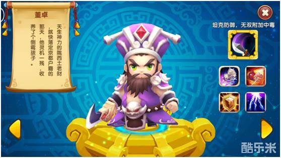 董卓属于前排输出型武将,技能自带吸血效果,对比其他输出型前排武将攻击力方面稍显不足,但有更高的生存能力。同时初期被动技能增加武将攻击,进化至紫色后可减少敌方前排防御,中后排有强力输出时作为副T可以较大强化队伍生存能力及推图顺畅度。