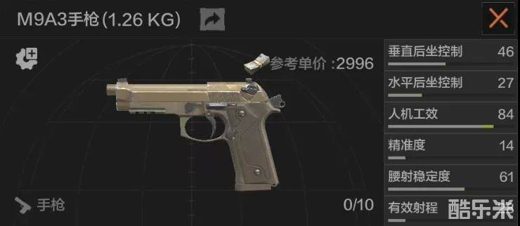 M9A3是使用9×19毫米子弹的手枪中性价比不错的一把。人机高、射速快,而且可以通过改枪加装瞄具、消音,甚至还可以选择17发的大弹匣。大家在打潜入的时候,有时就会默认持有这把手枪,老皮个人还是比较喜欢的。