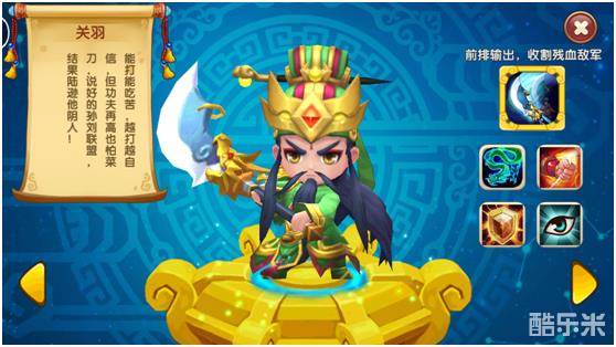 关羽属于前排输出型武将,无双附带溅射伤害,大招针对残血敌人造成额外伤害。同时初期被动技能增加武将攻击和生命,增加了武将的输出和生存能力,蓝色时可以增加我方前中排攻击力。从关羽的技能特性来看,较为适合作为输出型副T,加大整队输出。