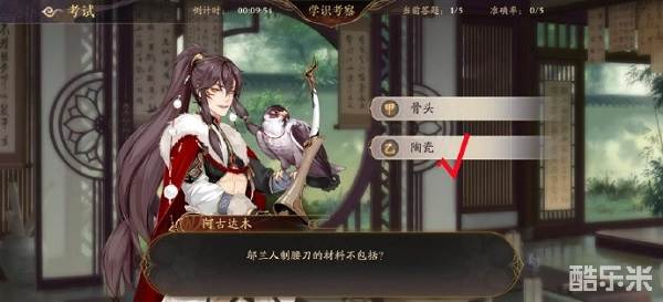 1、邬兰人制腰刀的材料不包括:陶瓷。