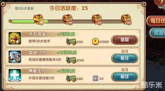 完成日常任务可以获得活跃度奖励,达到一定活跃度即可领取活跃宝箱。
