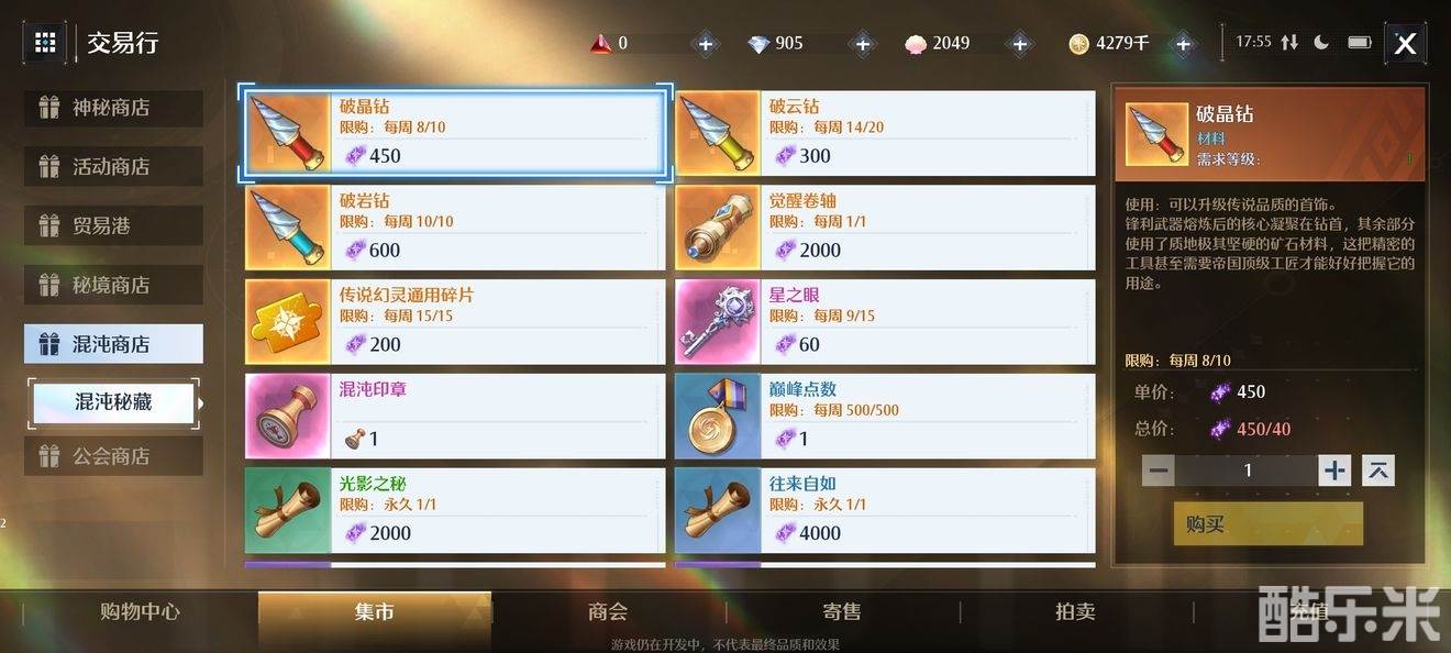 推荐优先购买【破晶钻】以升级登录第七天赠送的金色左戒