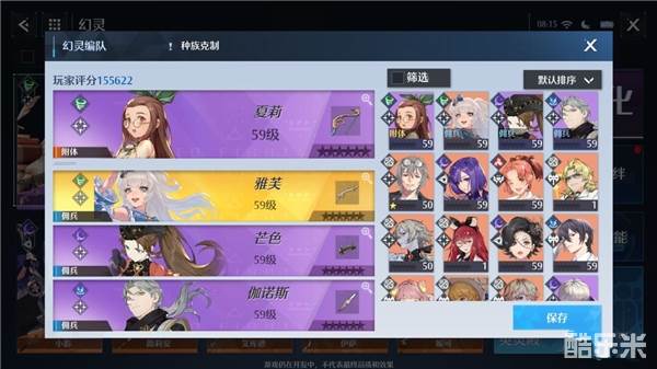 推荐阵容二:夏莉、雅芙、芒色、伽诺斯