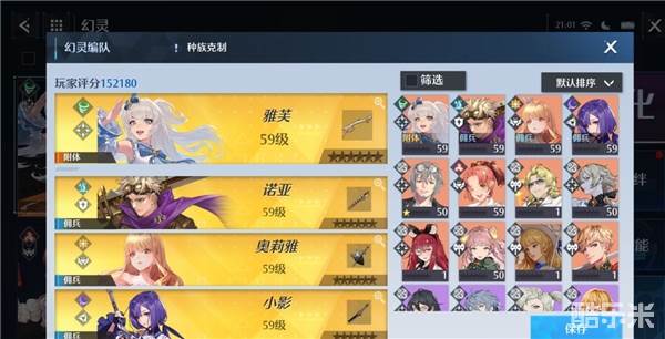 推荐阵容二:诺亚、雅芙、奥莉雅、小影