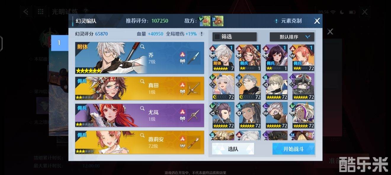 理由:乔可以对敌人施加【灼烧】和【易燃】效果,薇莉安有输出,还能回血。整体阵容都是烈焰种族,配合乔【进击火车】、真田【夺命连刺】、尤岚【红色玫瑰】、薇莉安【完美谢幕】,可以快速叠满【灼烧】和【易燃】效果打出极致伤害。
