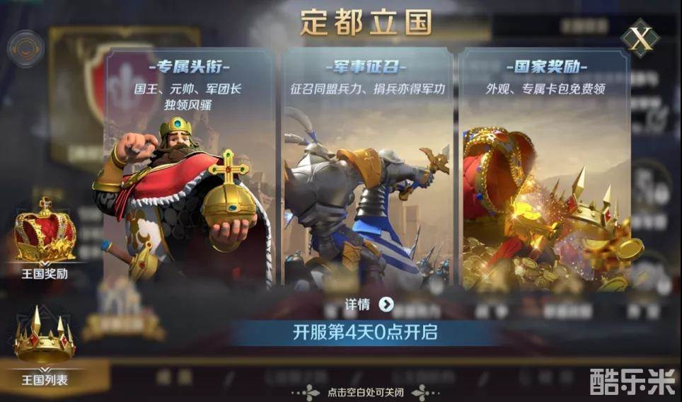 每个国家都可以获得相应的国家结算奖励,国家奖励有周俸禄和王国奖励两种。
