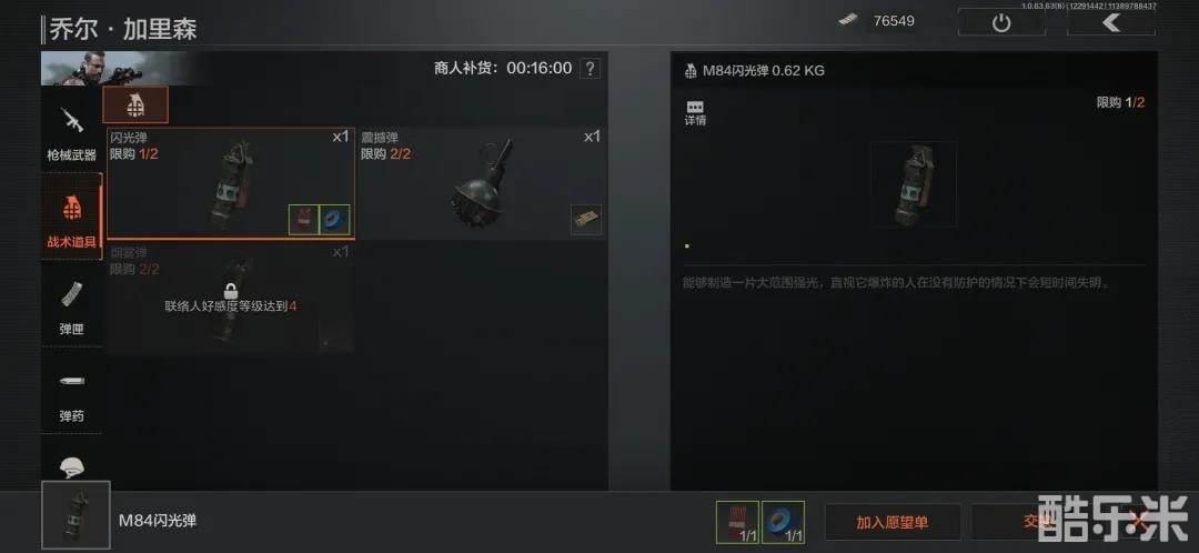 在局外,你既可以从市场上直接购买,也可以从联络人乔尔·加里森处用杂物兑换部分投掷物。
