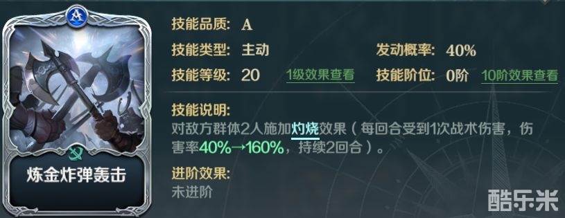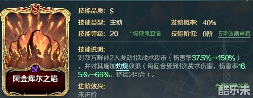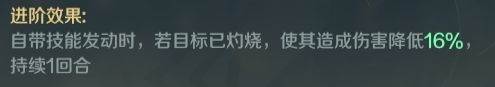 其有着高达50%的发动概率,伤害倍率中等偏上,对单体造成伤害后施加灼烧效果,在灼烧覆盖足够的情况下,稳定提高队友伤害,进阶效果还可以降低敌人的伤害。