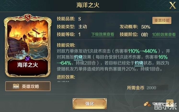 海洋之火稳定提供灼烧、增益效果以及补充伤害,在合理搭配下,搭配上灼烧流输出英雄,可以给队友的伤害进行强大的增幅,爆发出更强的伤害。
