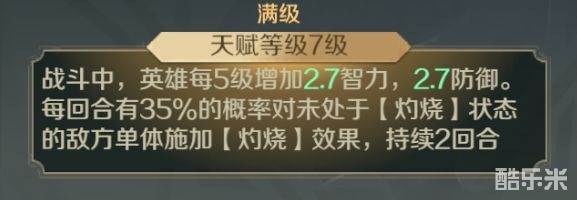 西奥多拉的决胜天赋可以每回合35%概率使未被灼烧的目标施加灼烧效果,可以进一步增大灼烧覆盖范围以及灼烧覆盖的速度。