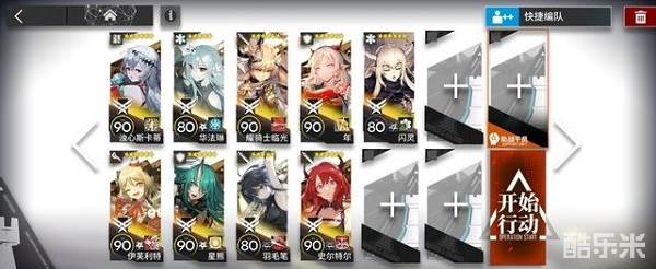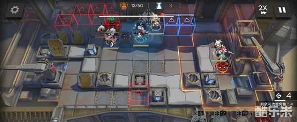 2、开局先部署羽毛笔,这个基本上很难找到替代的,然后就是红蒂部署好,右侧部署好耀光冲下攻击,耀光携带一技能暖机技能,冲下攻击。