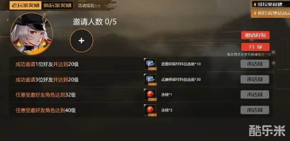 然后是邀请玩家的奖励,最完美的完成方式当然是直接邀请朋友们一起来玩、入坑咯,这样既能完成自己的邀请任务,平时聊天也会有额外的讨论话题了。