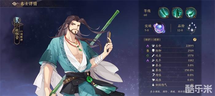 技能描述:杜怀音横摆竹棍,摆起护阵。每次行动后,恢复同排3名队友杜怀音5%生命上限的生命。