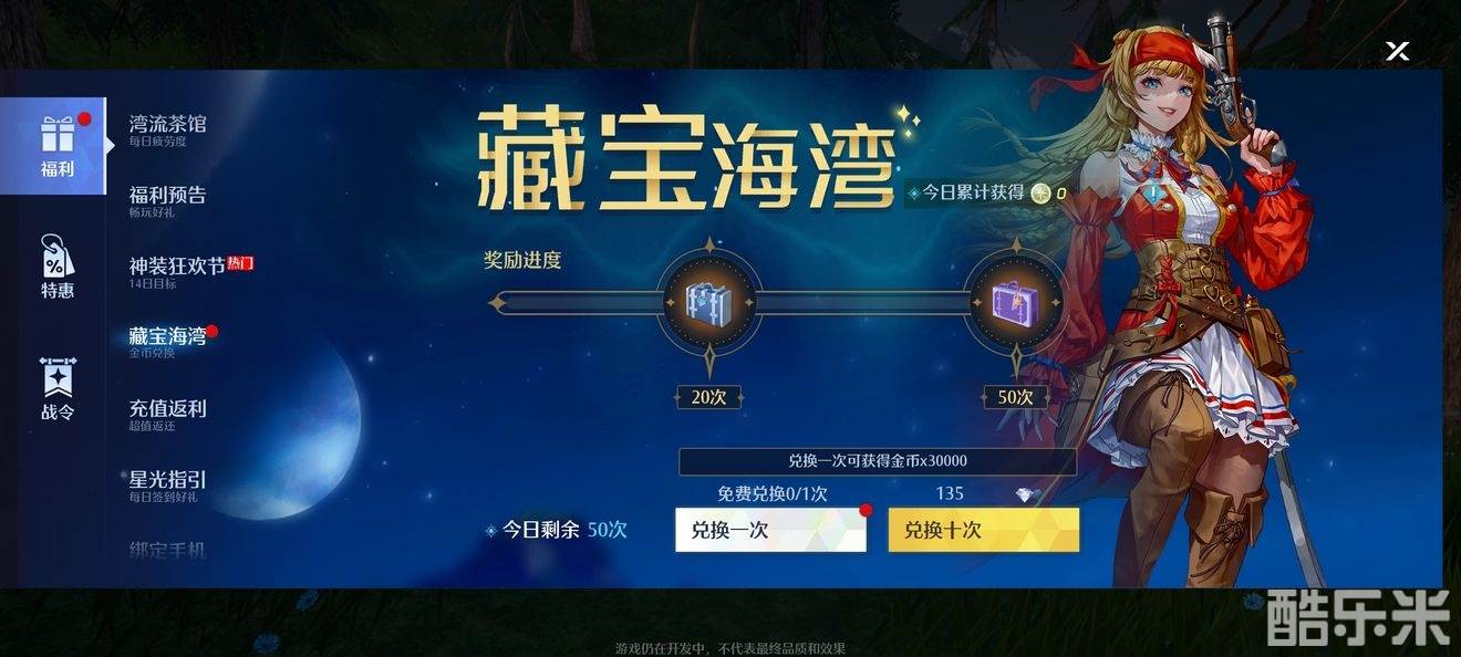 再然后就是【福利】中的【藏宝海湾】,花费735钻石共购买165W金币,前期最好购买完50次次数,因为前中期的金币需求量较多。