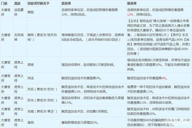 大唐官府3个流派之中,虎贲上将修改的幅度最大!较大幅度的提高了所有套装的触发几率。