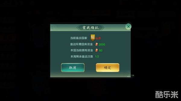国战是由本国之王或者帝后,选择进攻目标进行宣战,需要国库资金满足宣战条件下才可以进行宣战。