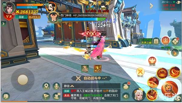 当国战开始时,本国玩家会接到系统的传送提示,确保上仙们不会错过这一重要活动。点击传送即可立即到达王城战地图,上仙们也可以通过点击国战随时加入战斗。