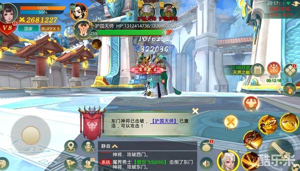 分别击破东西门神将后,将会激活护国天师和护国神将,这时可以选择继续兵分两路,分散敌方火力,也可以集火击破其中一个,更快的激活攻打界王。