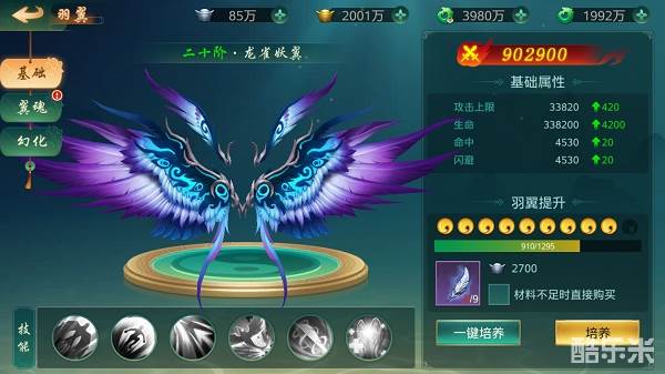 《傲世国战》里的羽翼不仅仅是仙气飘飘,更重要的是可提升角色属性、增强角色表现,提升的基础属性有攻击上限,生命,命中,闪避。
