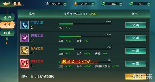 翼魂有4个属性:百灵之翼、苍鹰之翼、金乌之翼、鲲鹏之翼。