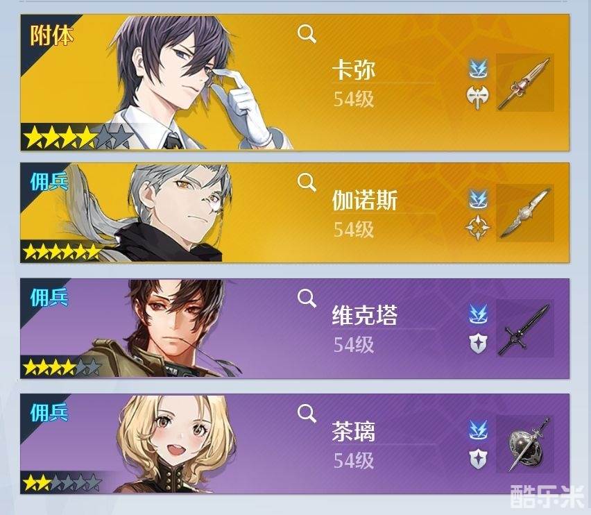 【卡弥】(附体)+【伽诺斯】(佣兵)+【维克塔】(佣兵)+【茶璃】(佣兵)