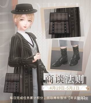 此次游戏更新后至5月1日,玩家完成每日任务累计积分,即可免费获取稀有服饰“商谈法则”。深色条纹不仅能够修饰身姿,也可衬托出优雅气质。