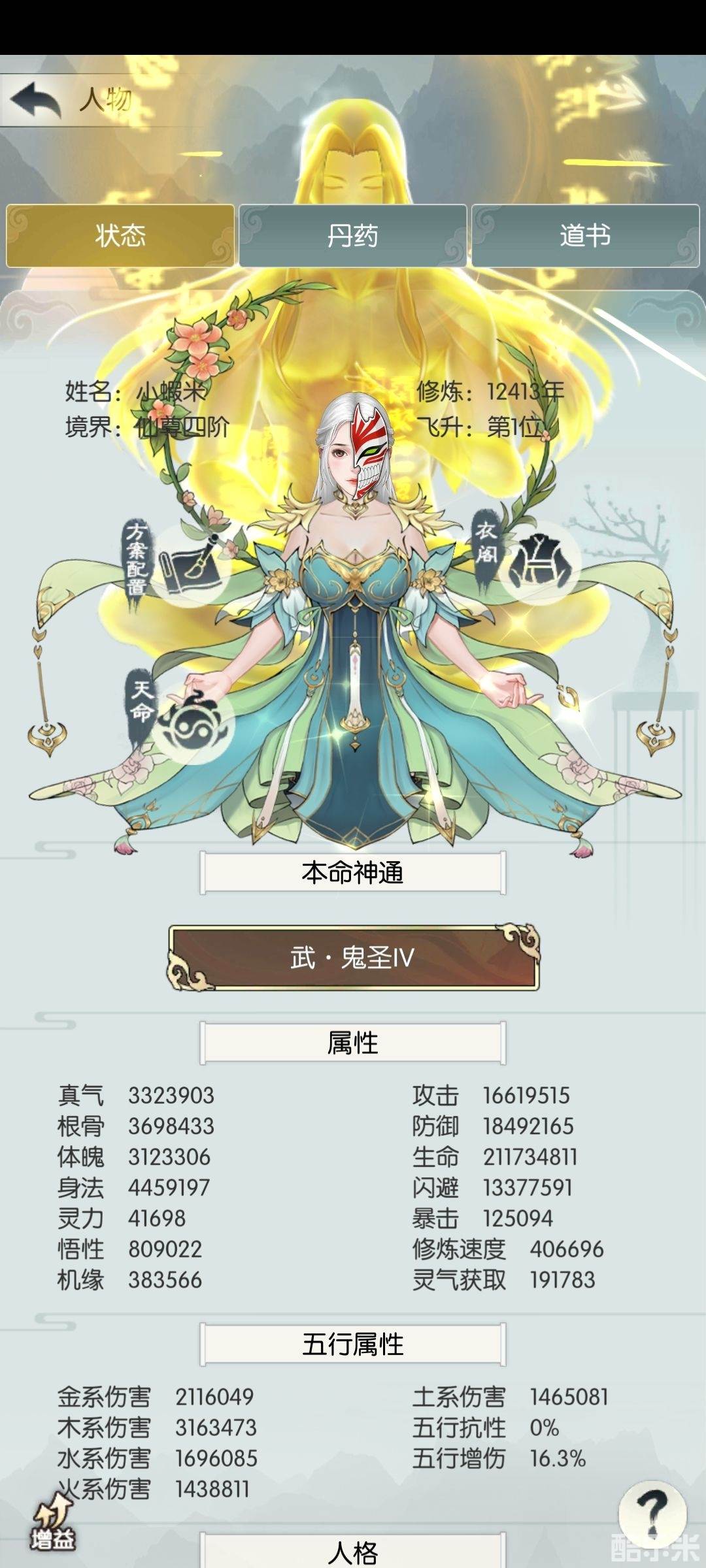 (其中五岳十六级,五行斗转十三级,五行乾坤十六级,五行五灵十级,魔胎十六级,主五攻击招式十九级)