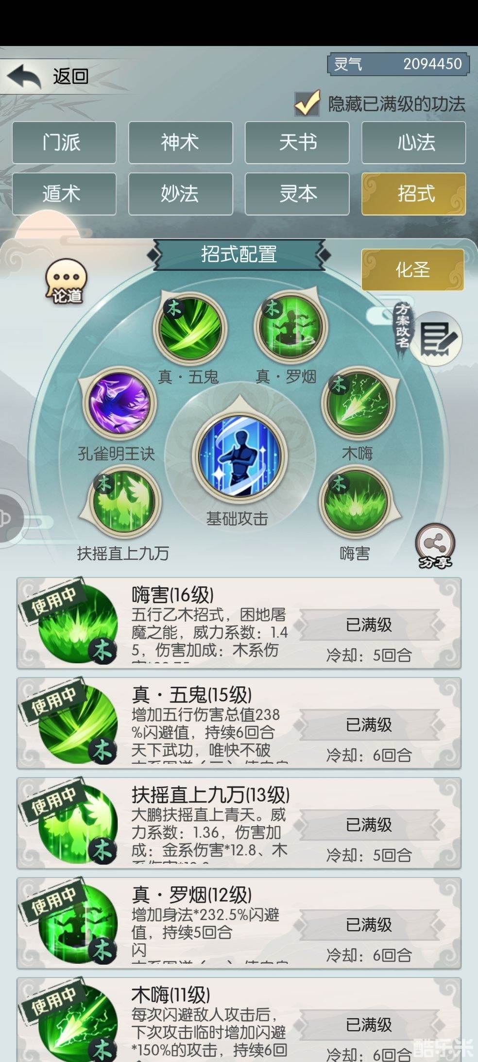 有的人可能会说剑左还有加真气*800%攻击,这点确实要说一下,鬼圣加剑左更容易破防打伤害,但是毕竟鬼圣减的是百分比的防,这里同样以上面的属性为例,在没有加防的buff下,计算可知刚好破防的临界值减63.6%防,已知四级鬼圣每回合减4.2%防,也就是第16回合才能破防,前面只能靠五斗或者反伤打伤害。所以这里需要考虑一下自己的伤害,如果比较低的话法则可以带全输出,如果伤害够的话就带减伤加回血,保证更能抗。如果你带了法则输出还不够,那还是继续用鬼圣平A流吧。