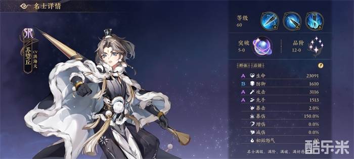 【暴雨梨花】:被动技能效果还是很不错的,提升了苏望丘在实战当中的出场率,被我们攻击的敌人,有50%概率,使得下一次普攻命中率降低80%。按照期望来计算的话,等于是降低了目标40%的普攻伤害,而且大招还是aoe效果,触发概率还是很高的,非常克制哪主打普攻输出的阵容,或者是协同攻击的队伍。