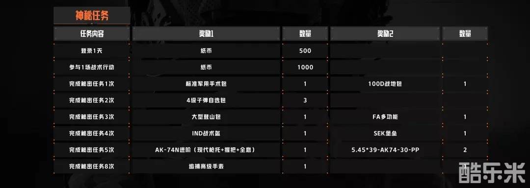 完成秘密任务达到一定次数会获得高级物资奖励,完成八次秘密任务后可获得活动道具——高级侦查手表。