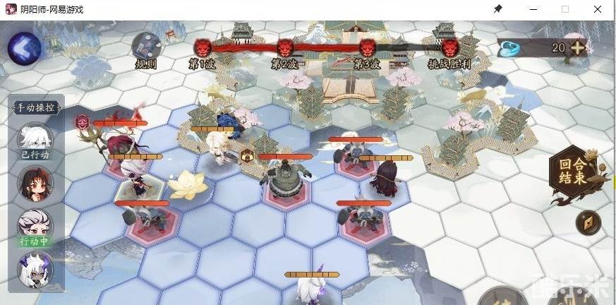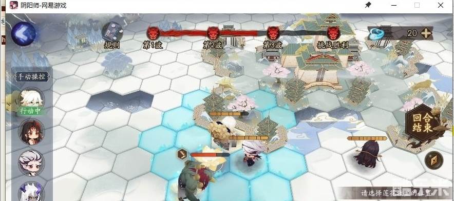 2.2帝释天移动到鬼吞上方格子并在小boss脚下放莲花,回合结束,第二波结束