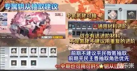 钥从池前期只建议中氪党抽取,虽然钥从池比较友好不会歪,但是:角色也不一定要用专属钥从,游戏里也有可肝的五星通用钥从 。所以关于钥从池的抽取,对于微氪白嫖玩家来说都是建议**:优先抽取角色,培养角色后,再根据自己的队伍搭配,决定给哪位角色抽专属钥从。