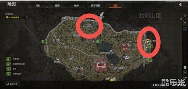 确认安全打开地图,然后找到北部山区公交总站,点击标记关闭地图