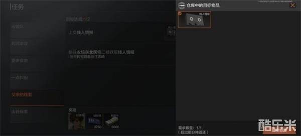 然后打开任务页面,点击提交会弹出一个窗口,选择里面的线人情报进行提交物品,这个任务就完成了。