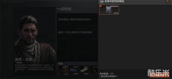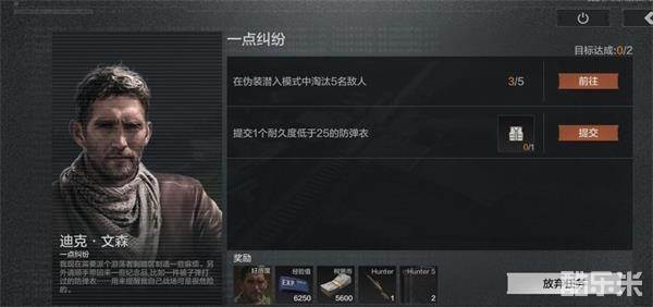 找到之后将防弹衣带出暗区,打开角色页面将防弹衣移至仓库,然后打开任务页面选择提交,就会弹出一个页面,页面中会显示你拥有的防弹衣,选择耐久度低于25的进行提交这个任务就完成了。