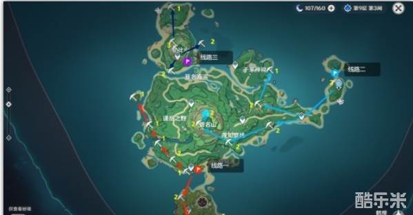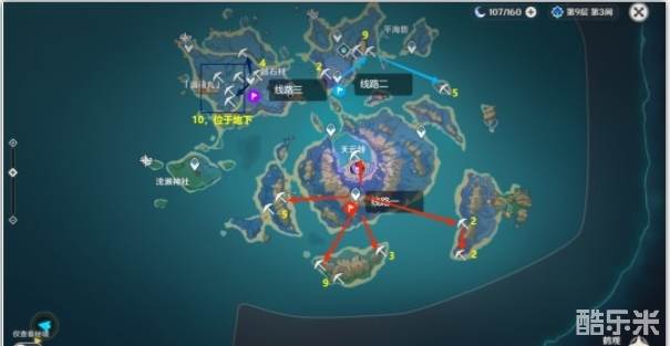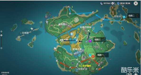 稻妻城这个路线,个人并不是很建议去,因为紫晶块的数量不多,且比较花费时间。