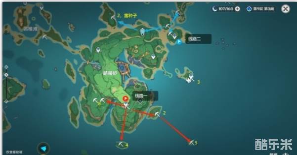 在线路一中,位于地图最右下角的小岛,我们是需要运用雷种子过去的。线路一具有较高的收益和可观的数量。